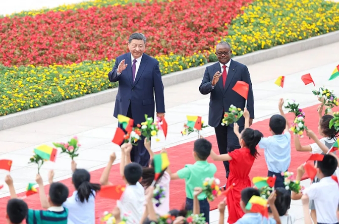 習(xí)近平指出,中國和非洲都擁有燦爛的文明,都有被殖民、被侵略的慘痛歷史,都珍惜和追求民族獨(dú)立和解放。中國和非洲國家彼此的支持和幫助是真誠的,是真實(shí)親誠的友好兄弟和發(fā)展中國家團(tuán)結(jié)合作的典范,新形勢下我們應(yīng)該聯(lián)手創(chuàng)造新時(shí)代。中非合作論壇是中非人民踐行和平共處五項(xiàng)原則、促進(jìn)共同發(fā)展的重要平臺。兩周前,我們在北京隆重舉行和平共處五項(xiàng)原則發(fā)表70周年紀(jì)念活動(dòng)。今年秋季將在北京舉辦新一屆中非合作論壇峰會(huì)。中方愿同幾內(nèi)亞比紹等非洲國家一道,弘揚(yáng)和平共處五項(xiàng)原則,共商新時(shí)代中非合作大計(jì),維護(hù)發(fā)展中國家共同利益和國際公平正義,攜手共建高水平中非命運(yùn)共同體,推動(dòng)構(gòu)建人類命運(yùn)共同體。