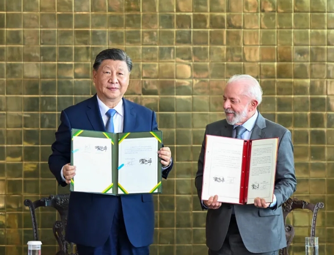 習近平同巴西總統(tǒng)盧拉共同簽署聯(lián)合聲明宣布攜手構(gòu)建中巴命運共同體