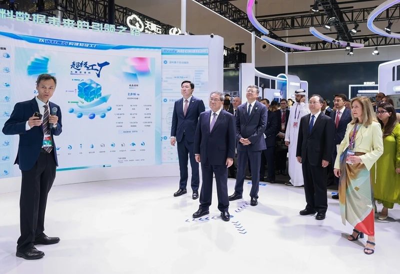 開幕式后,李強同與會外方嘉賓、國際組織代表共同巡館,并與有關(guān)科研機構(gòu)和企業(yè)負責人互動交流。