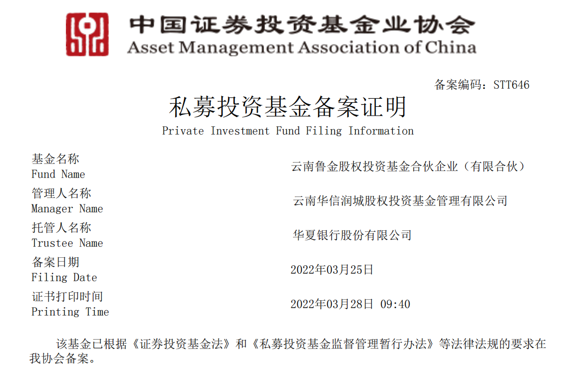 2022年3月,云南魯金股權(quán)投資基金合伙企業(yè)(有限合伙)(下稱“魯金基金”)成功完成中國基金業(yè)協(xié)會備案,實現(xiàn)了云南產(chǎn)投公司引入省外頭部國資投資機構(gòu)管理基金落地云南“零”的突破。魯金基金是云南產(chǎn)投公司作為有限合伙人聯(lián)合魯信創(chuàng)業(yè)投資集團股份有限公司(下稱“魯信創(chuàng)投”)、深圳瞻天潤元投資合伙企業(yè)(有限合伙)共同發(fā)起設(shè)立并在云南落地注冊的創(chuàng)業(yè)投資基金。基金主要圍繞生物醫(yī)藥、醫(yī)療健康行業(yè)具有發(fā)展?jié)摿Φ膬?yōu)質(zhì)未上市企......