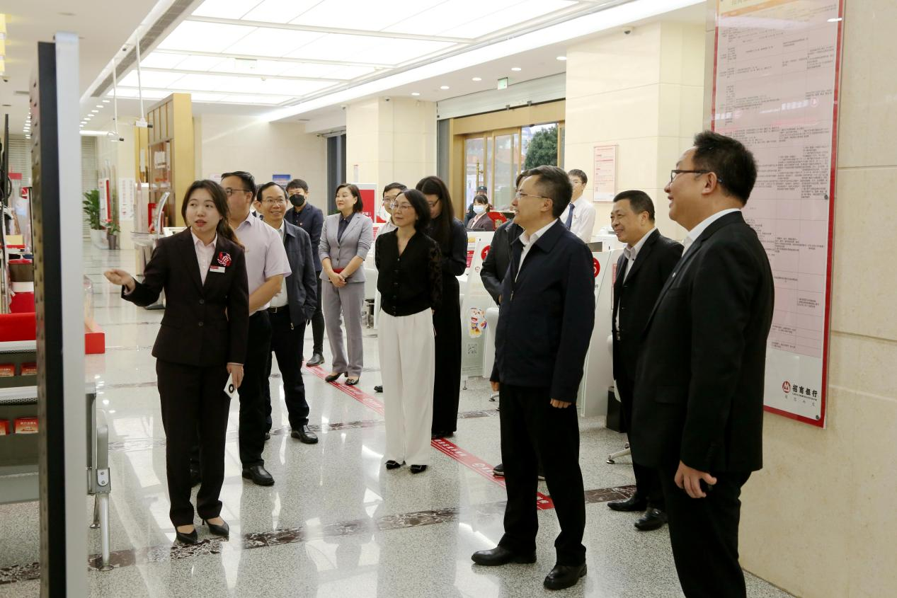 葉智勇總裁一行在招商銀行昆明分行冀華行長(zhǎng)、胡冠軍副行長(zhǎng)等陪同下參觀了招商銀行昆明分行營業(yè)部,實(shí)地了解了招商銀行昆明分行的業(yè)務(wù)開展情況,參觀了招商銀行金融主題教育文化走廊、抓黨建促扶貧等工作進(jìn)展。雙方還圍繞下一步深化合作進(jìn)行了交流。