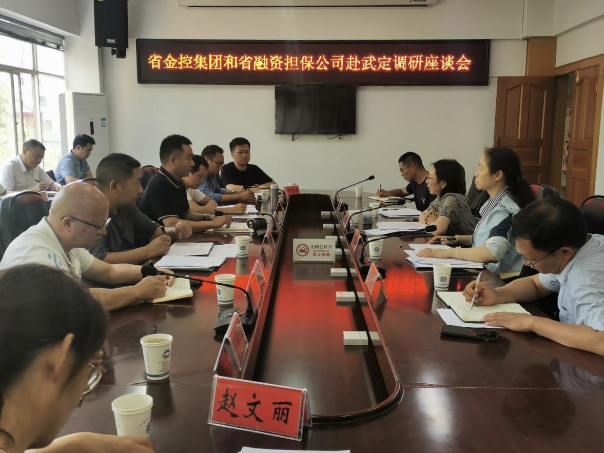 武定縣政府、相關(guān)職能部門(mén)及金融機(jī)構(gòu)負(fù)責(zé)人、省委組織部派駐武定代表等人員參加座談會(huì),集團(tuán)資本運(yùn)營(yíng)部、省融資擔(dān)保公司、楚雄州擔(dān)保公司有關(guān)人員陪同調(diào)研。