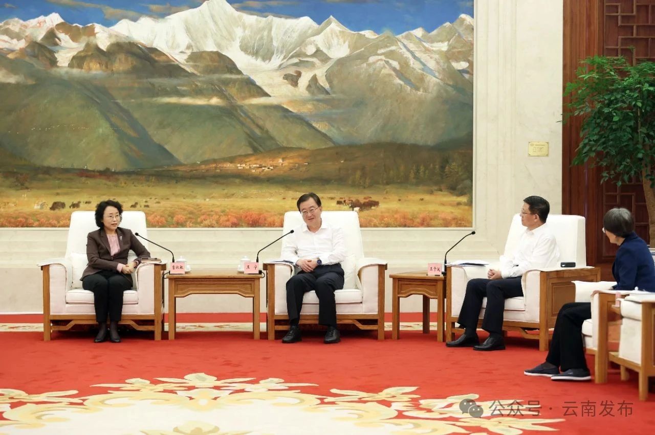 7月3日,省委書記王寧,省委副書記、省長王予波在昆明與來滇調(diào)研的中宣部副部長、國家廣電總局局長曹淑敏一行舉行工作會談。