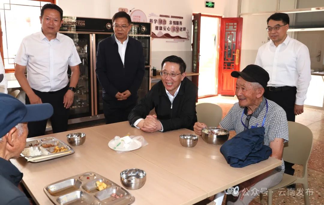 王予波在紅塔區(qū)大營社區(qū)幸福食堂與老年群眾交流。