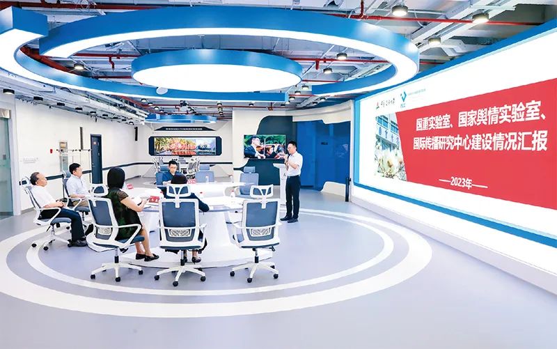 圖為2023年6月1日,教育部黨組第一巡視組在中國(guó)傳媒大學(xué)調(diào)研教育部首批試點(diǎn)建設(shè)的9家哲學(xué)社會(huì)科學(xué)重點(diǎn)實(shí)驗(yàn)室之一——國(guó)家輿情實(shí)驗(yàn)室。 教育部供圖