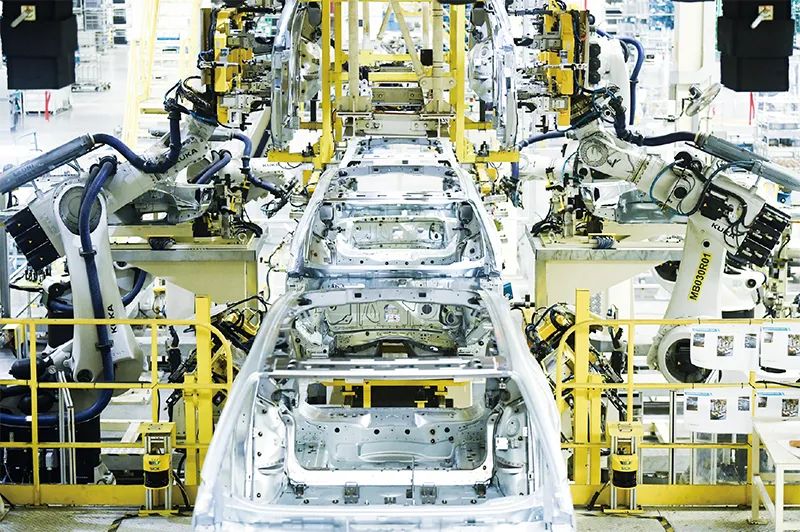 實體經(jīng)濟(jì)是金融的根基,金融是實體經(jīng)濟(jì)的血脈。近年來,浙江余姚市通過加大科技金融支持、推進(jìn)創(chuàng)新平臺建設(shè)等政策,不斷壯大優(yōu)勢產(chǎn)業(yè)集群,推進(jìn)制造業(yè)向高端化、智能化、綠色化發(fā)展。圖為2023年4月11日,在一家汽車企業(yè)的余姚工廠焊裝車間,智能機(jī)器人正在作業(yè)。 新華社記者 翁忻旸/攝