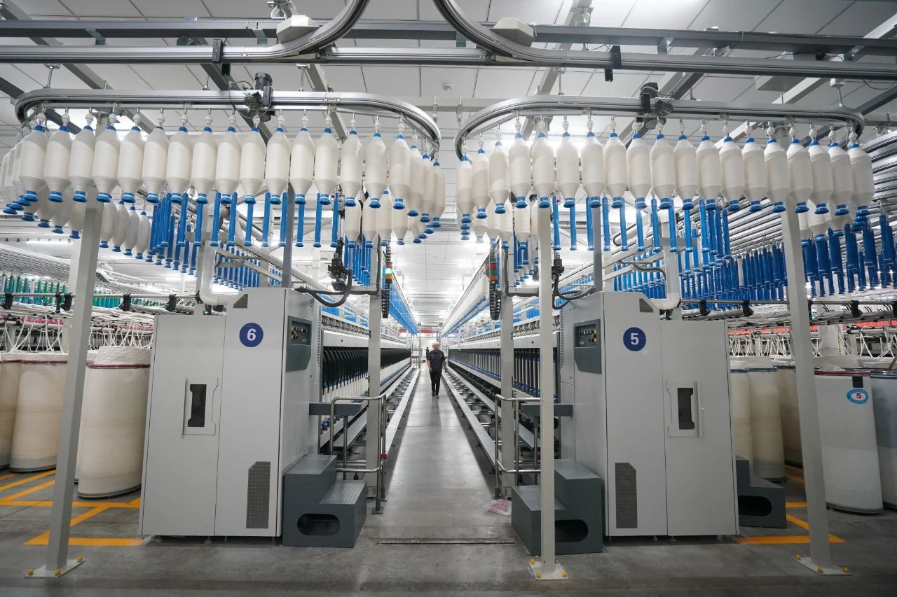 圖為2025年4月5日,位于江蘇泰州市姜堰區(qū)的一家紡織企業(yè)的智慧化紡紗工廠生產(chǎn)場景。新華社記者 季春鵬/攝