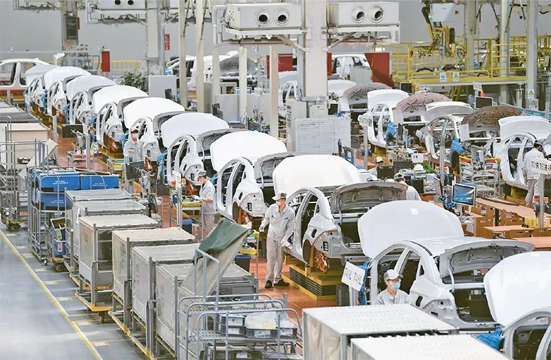 2023年4月12日,習(xí)近平總書記來到廣汽埃安新能源汽車股份有限公司考察。他走進(jìn)企業(yè)展廳、總裝車間、電池生產(chǎn)車間等,了解企業(yè)突破關(guān)鍵核心技術(shù)和推動制造業(yè)高端化、智能化、綠色化等進(jìn)展情況。圖為廣汽埃安新能源汽車股份有限公司總裝生產(chǎn)線。 新華社記者 鄧華/攝