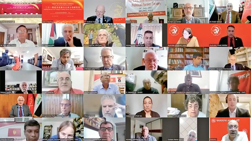 2022年7月28日,中國共產(chǎn)黨與世界馬克思主義政黨論壇舉行。習(xí)近平總書記在賀信中強(qiáng)調(diào),中國共產(chǎn)黨愿同各國馬克思主義政黨加強(qiáng)交流對話,立足本國國情,把準(zhǔn)時(shí)代脈搏,不斷豐富和發(fā)展馬克思主義,在攜手推動(dòng)構(gòu)建人類命運(yùn)共同體的進(jìn)程中讓馬克思主義展現(xiàn)出更強(qiáng)大的真理力量。圖為外國政黨代表線上參加論壇。 中共中央對外聯(lián)絡(luò)部供圖