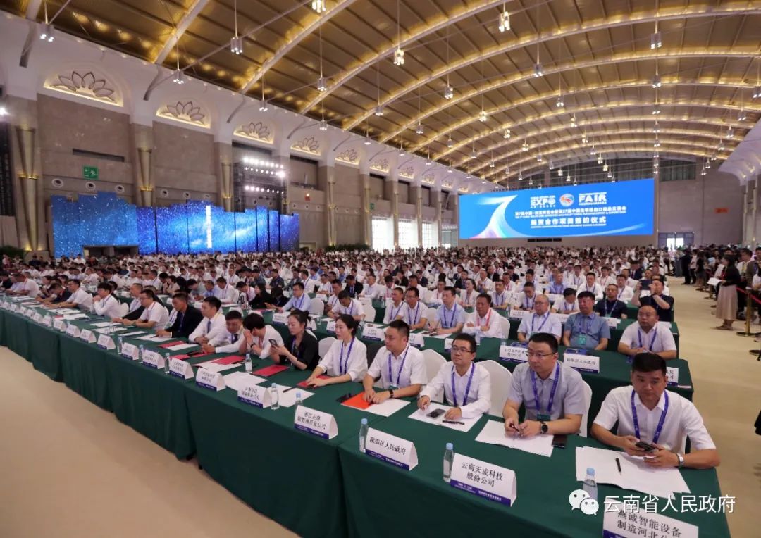 △ 8月17日,第7屆中國—南亞博覽會暨第27屆中國昆明進(jìn)出口商品交易會經(jīng)貿(mào)合作項目簽約儀式在昆明滇池國際會展中心舉行。