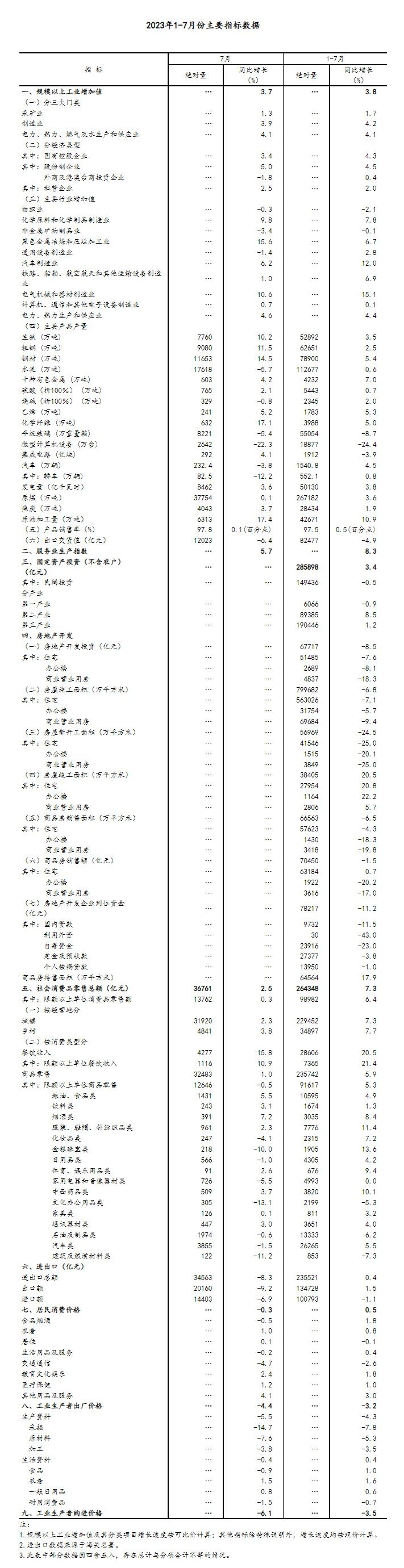 總的來(lái)看,7月份,國(guó)民經(jīng)濟(jì)持續(xù)恢復(fù),高質(zhì)量發(fā)展扎實(shí)推進(jìn)。但也要看到,世界政治經(jīng)濟(jì)形勢(shì)錯(cuò)綜復(fù)雜,國(guó)內(nèi)需求仍顯不足,經(jīng)濟(jì)恢復(fù)向好基礎(chǔ)仍待加固。下階段,要堅(jiān)持以習(xí)近平新時(shí)代中國(guó)特色社會(huì)主義思想為指導(dǎo),堅(jiān)持穩(wěn)中求進(jìn)工作總基調(diào),完整、準(zhǔn)確、全面貫徹新發(fā)展理念,加快構(gòu)建新發(fā)展格局,全面深化改革開(kāi)放,加大宏觀政策調(diào)控力度,著力擴(kuò)大內(nèi)需、提振信心、防范風(fēng)險(xiǎn),不斷推動(dòng)經(jīng)濟(jì)運(yùn)行持續(xù)好轉(zhuǎn)、內(nèi)生動(dòng)力持續(xù)增強(qiáng)、社會(huì)預(yù)期持續(xù)改善、風(fēng)險(xiǎn)隱患持續(xù)化解,推動(dòng)經(jīng)濟(jì)實(shí)現(xiàn)質(zhì)的有效提升和量的合理增長(zhǎng)。