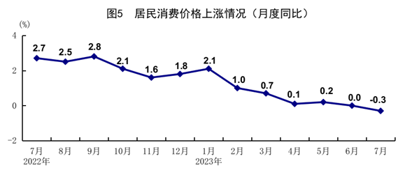 7月份,全國(guó)居民消費(fèi)價(jià)格(CPI)同比下降0.3%,環(huán)比上漲0.2%。分類(lèi)別看,食品煙酒價(jià)格同比下降0.5%,衣著價(jià)格上漲1.0%,居住價(jià)格上漲0.1%,生活用品及服務(wù)價(jià)格下降0.2%,交通通信價(jià)格下降4.7%,教育文化娛樂(lè)價(jià)格上漲2.4%,醫(yī)療保健價(jià)格上漲1.2%,其他用品及服務(wù)價(jià)格上漲4.1%。在食品煙酒價(jià)格中,豬肉價(jià)格下降26.0%,鮮菜價(jià)格下降1.5%,糧食價(jià)格上漲0.3%,鮮果價(jià)格上漲5.0%??鄢称泛湍茉磧r(jià)格后的核心CPI同比上漲0.8%,漲幅比上月擴(kuò)大0.4個(gè)百分點(diǎn)。1-7月份,全國(guó)居民消費(fèi)價(jià)格同比上漲0.5%。