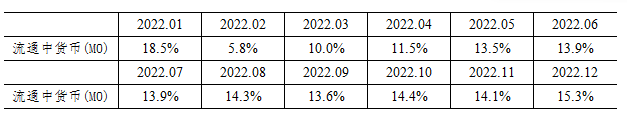 ?注4:自2022年12月起,“流通中貨幣(M0)”含流通中數(shù)字人民幣。12月末流通中數(shù)字人民幣余額為136.1億元。修訂后,2022年各月末M1、M2增速無明顯變化。修訂后M0增速如下: